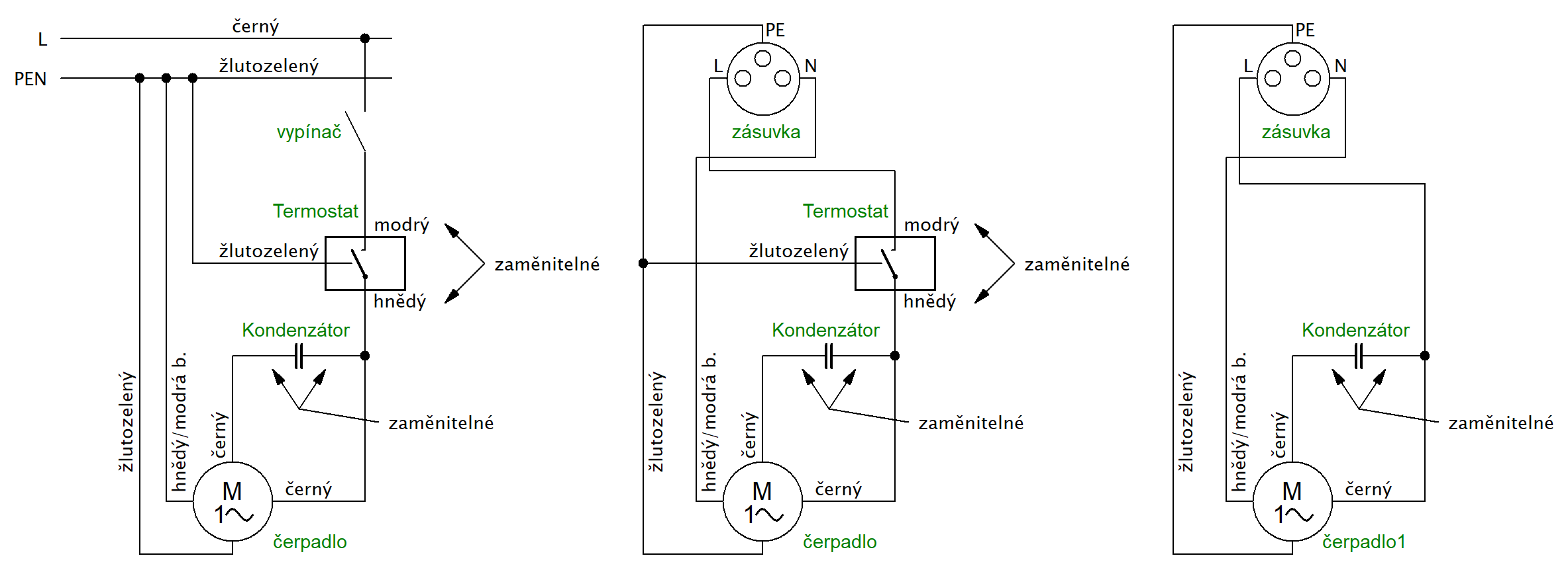 Takže žlutozelný z čerpadla a příložného termostatu na ochranný kolík zástrčky