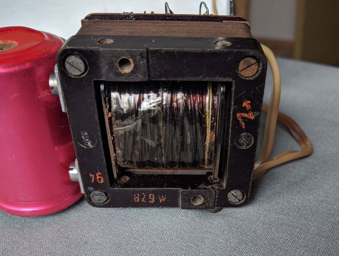 Na stahovací konstrukci zmíneného trafa je logo Siemens-Halske.
