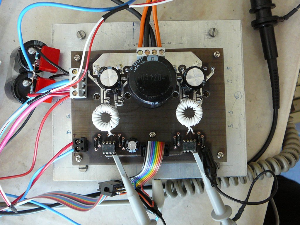 Když jsem před lety stavěla 3,5kW měnič, tak jsem teda ss složku na primáru trafa neřešila vůbec. Řešila jsem budicí trafíčka, ta se při přechodných dějích sytila na doraz, tak jsem je trochu předimenzovala. Žádné sériové kondenzátory. Most jsem budila fázovou modulací - oba polomosty jedou se střídou 50% (mají společné budicí trafíčko) a mění se fáze mezi polomosty. Navíc spínané kvazirezonančně při nulovém napětí (ZVS), takže ztráty malé a rušení taktéž. Našla jsem fotku toho samotného střídače. Původně byly na budičích přilepené chladiče, ale nakonec po vyladění nebyly potřeba. Zařízení běhá dodnes, přežilo i zkrat na výstupu, když se protavila izolace trafa. K poškození došlo, až když do lety zaprášeného měniče nalila obsluha vodu.
