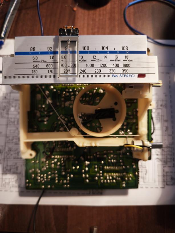 Nerad bych z toho začal zkusmo tahat kondenzátory hlavně proto, že bych nerad sundaval mechanismus se stupnicí který zavazí z větší části PCB.