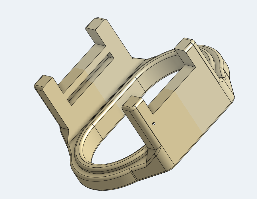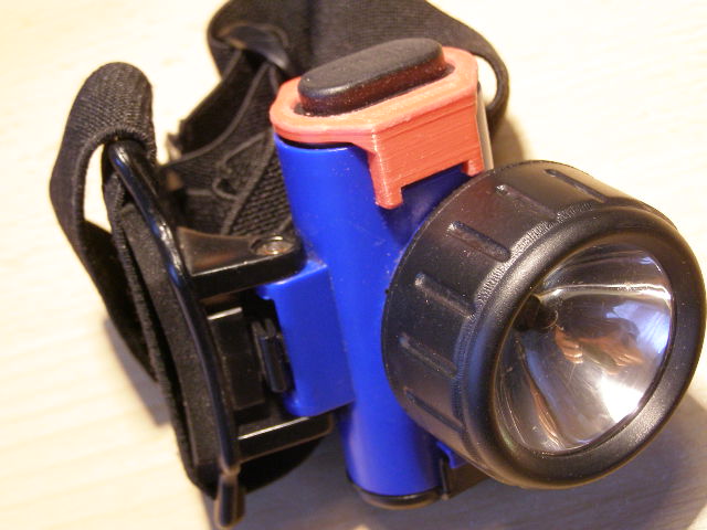 Na čelovce prasknul hen tý bazmek, který je nyní červený. Trochu jsem přidal nějaký ten rádius a výztuhu aby to udrželo PLA. Také jsem to zajistil proti tahu na cvak do strany. Proto to asi prasklo.