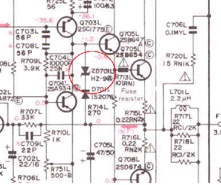 Pokud jsi na prvním obrázku měřil správně (kromě C), tak jsi u Q703 naměřil Ube 1.4V. A to u dobrého tranzistoru (pokud to není darlington) nenaměříš.