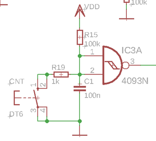 On ten Schmitt s RC článkem je (znovuspustitelný) MKO. A ten odpor na ochranu tlačítka tu nikdo nezmínil, všichni cpete nemalej kondenzátor "k odstranění zákmitů" rovnou k tlačítku, přitom on časem ty zákmity ještě zhoršuje.