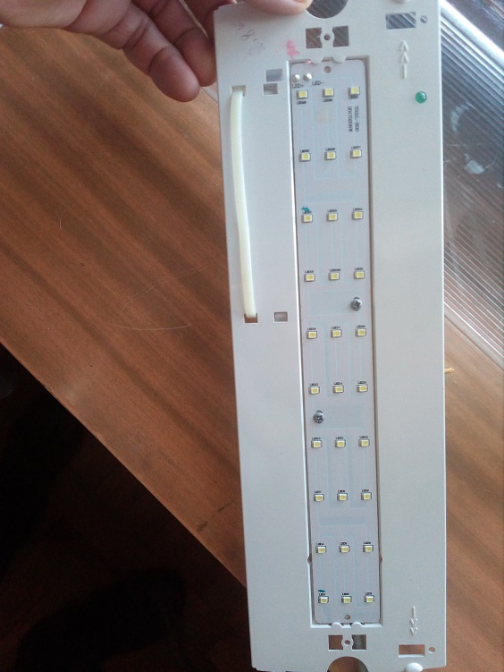 Vrak nouzového únikového osvětlení. Když to má síť, nabíjí se ta vnitřní aku a při výpadku sítě by to na ní mělo několik hodin svítit. Ty baterie bývají KO a deska elektroniky vyhřátá. Asi nemá smysl to opravovat.
