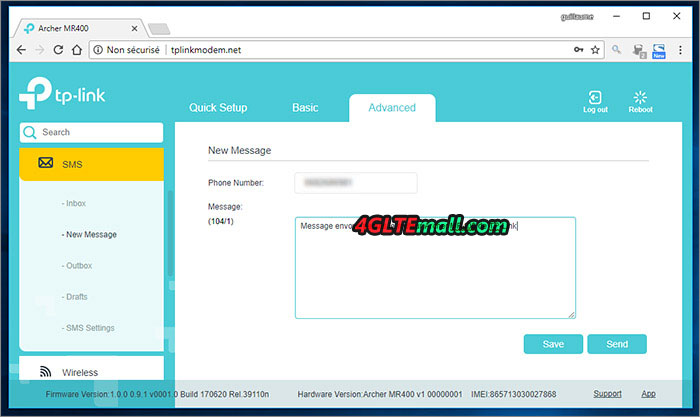 Chtělo by přesný název toho zařízení. Pokud vím, tak některé modemy od TP-Linku neumí přijímat SMS. Mám vyzkoušený Tp-link tl-mr150 a ten to umí. Měl by to umět také tl-mr6400, možná bude záležet na verzi FW.