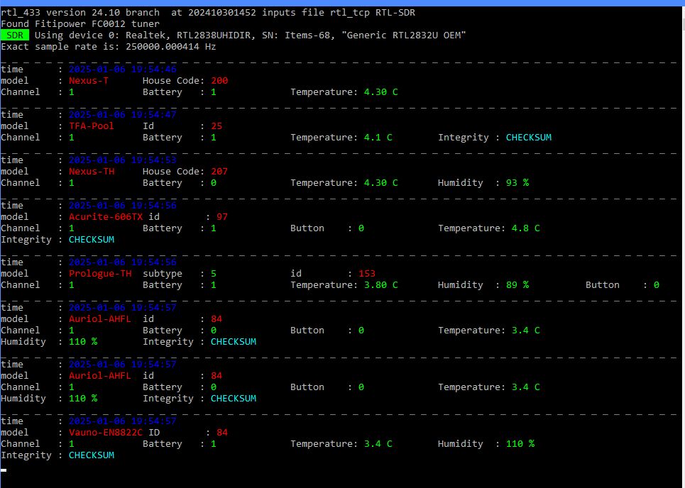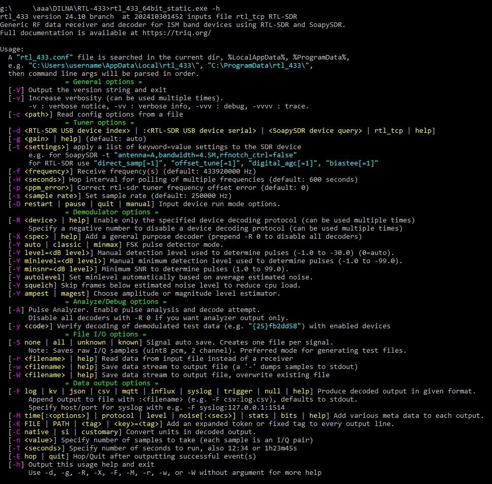 rtl_433 version 24.10 branch at 202410301452 inputs file rtl_tcp RTL-SDR