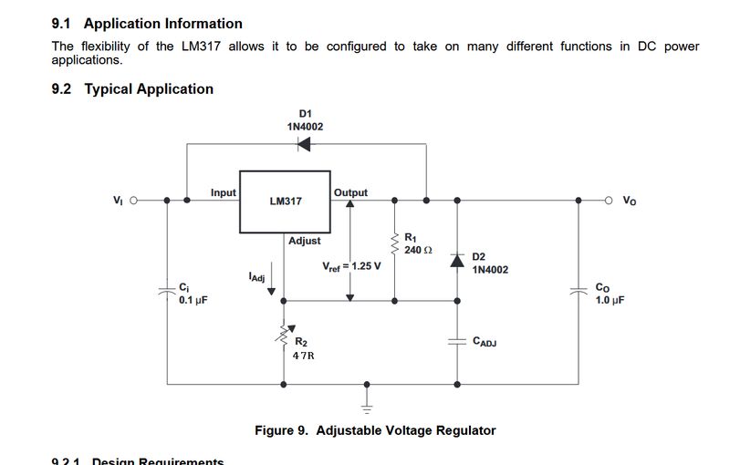 R2 vychází to na 47R (ty diody v této aplikaci nejsou nutně potřeba, stejně tak by ani nemusel být Cadj).