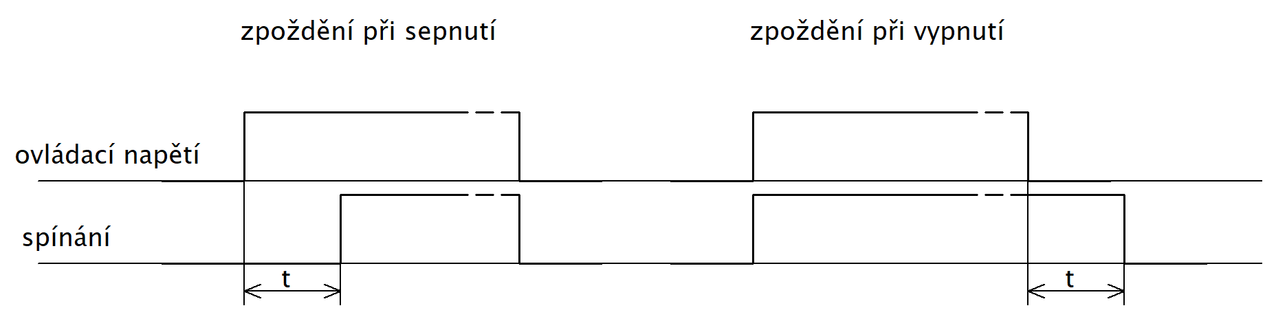 Charakteristiky relé se zpožděným sepnutím a zpožděním při vypnutí jsou funkčně navzájem inverzní.