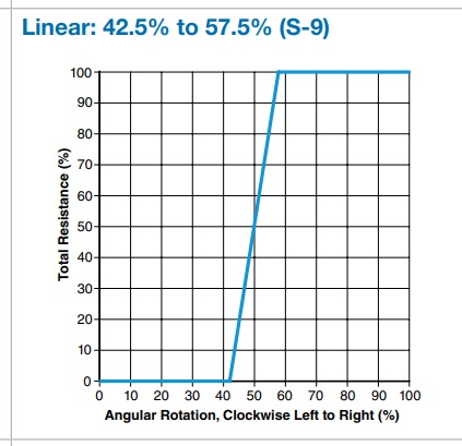 Z uvedených pramenů lze jednoznačně určit, na jakém úhlu natočení hřídele (ve stupních, nikoliv v %, což je úplná blbost to uvádět) potřebuju jakou změnu či hodnotu odporu.