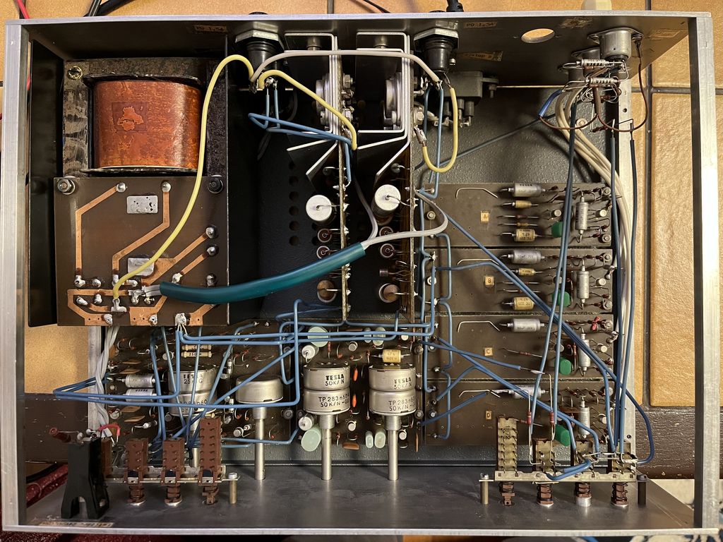Postupně jsem jej oživil, hraje dobře, ale je slyšet brum. Brum dělá zřejmě konec - když odpojím vstup do konce, tak tam brum pořád je. Oba kanály brumí stejně.