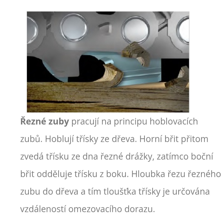 Omezovací zuby určují vlastně sílu piliny, čím vyšší, tím je pilina slabší.