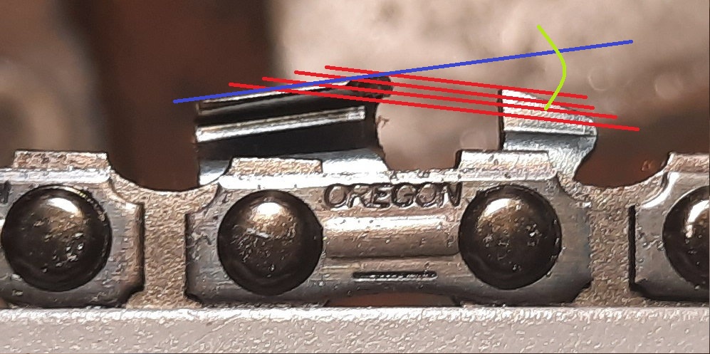 Asi máš dnes pod kloboukem volno . Výška omezováku určuje stupeň(úhel) řezu zubu . Neudává se ve stupních , ale tento úhel je zajištěn přikládanou měrkou pro úpravu výšky omezováku , ergo kladívko tou výškou omezováku se úhel nastaví . Ještě někdo ze slabší školy ?