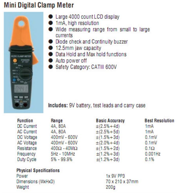 Klešťový ampérmetr D-CM-ST01 technická specifikace