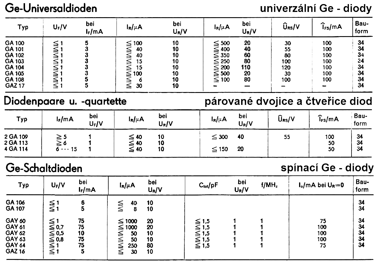 Nejvíc kousků mám GAZ17, na RM píšou, že je spínací pro průmyslové využití v digitální technice, ale katalog RFT 1970 uvádí z řady GAZ právě tento typ mezi univerzálními diodami. Kapacity řeší jen u spínacích.