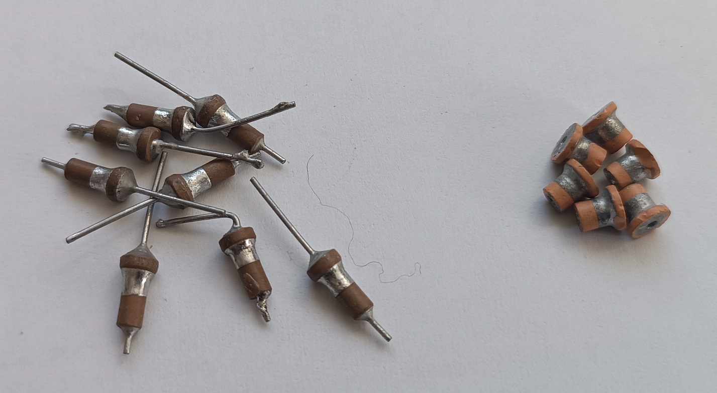 Potřebuju pár kousků průchodkových kondů 1-1N5. Něco jsem vyhrabal v zásobách, viz foto. To vlevo je klasika, na BM509 ukazují od 1N - 1N2. Ty vpravo mají kolem 1N5. Vůbec ale netuším, odkud je mám, a jestli to je finál a nebo nějakej polotovar. Není to náhodou podle barvy beríliovka?