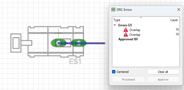 Mám svorkovnici Wago 255 kde každá svorka má dva piny na stejném potenciálu v knihovně je to jako 1 a B1 pin dá se to nějak sloučit. Aby pin A i B měl stejný potenciál , nebo každý pin musí mít svůj připojovací bod. DRC mi to pochopitelně vyhazuje jako owerlap když tam přetáhnu cestu tedy přes B.