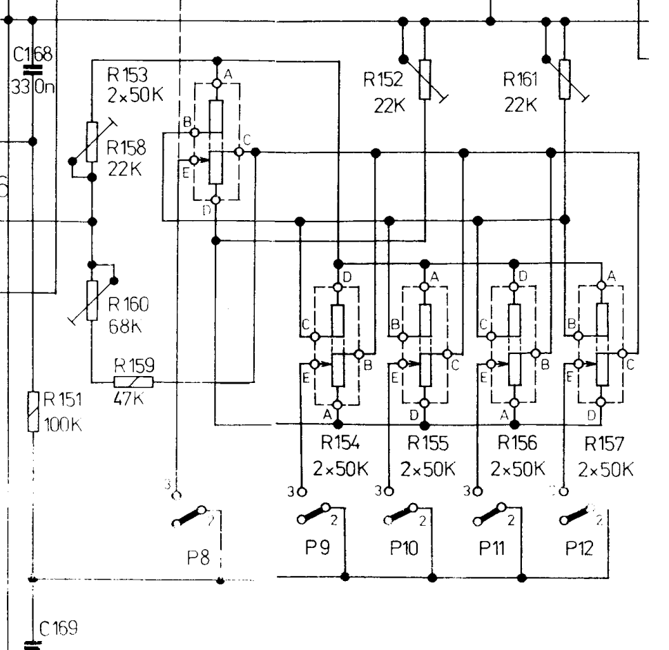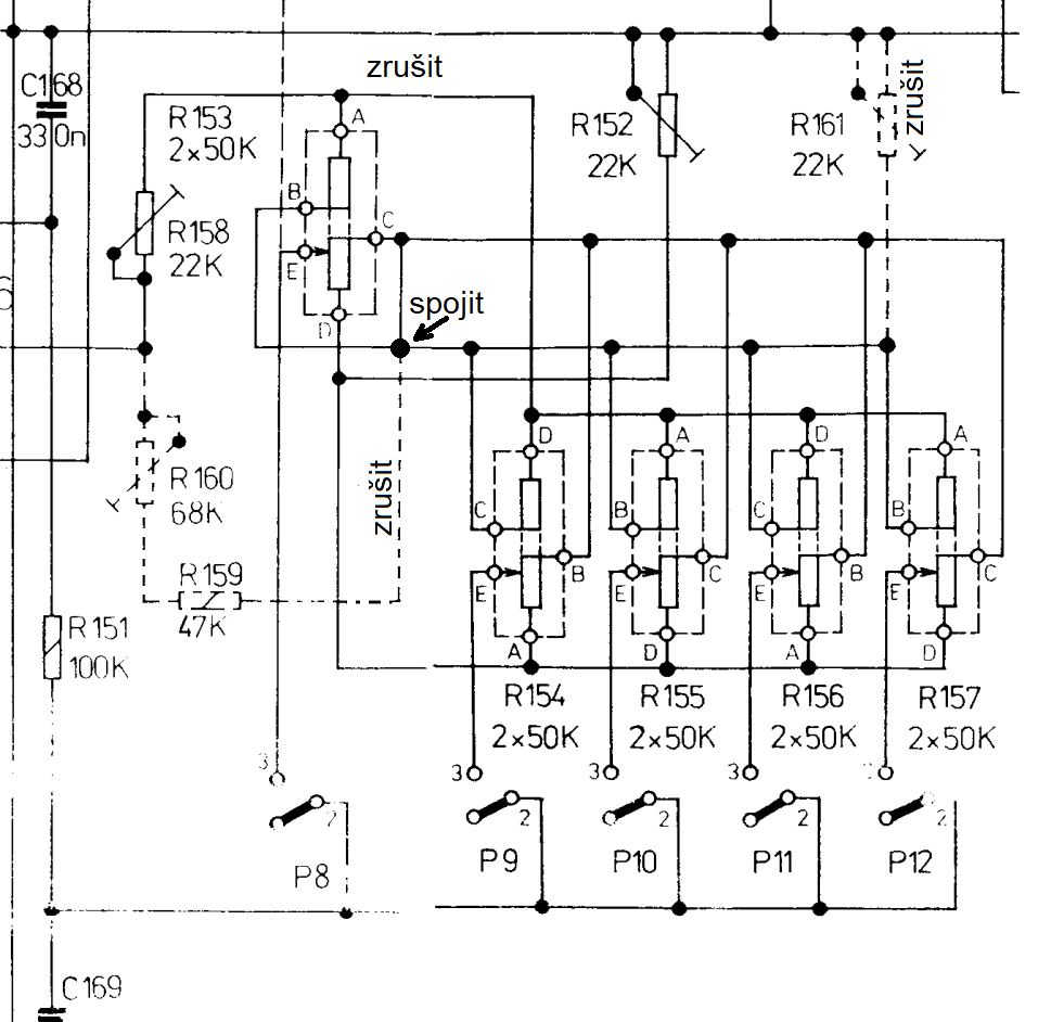 Co udělá přechod mezi dráhami, resp. mezi body B a C, to ti nepovím, nicméně neočekával bych kdovíjaký problém.To výměna celých drah potenciometrů by byla podstatně náročnější.