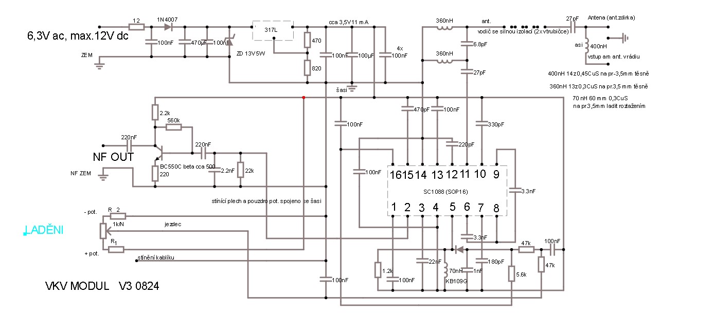modulů VKV s obvodem SC1088 klon TDA7088 . Varikap je laděn napětím v rozsahu cca