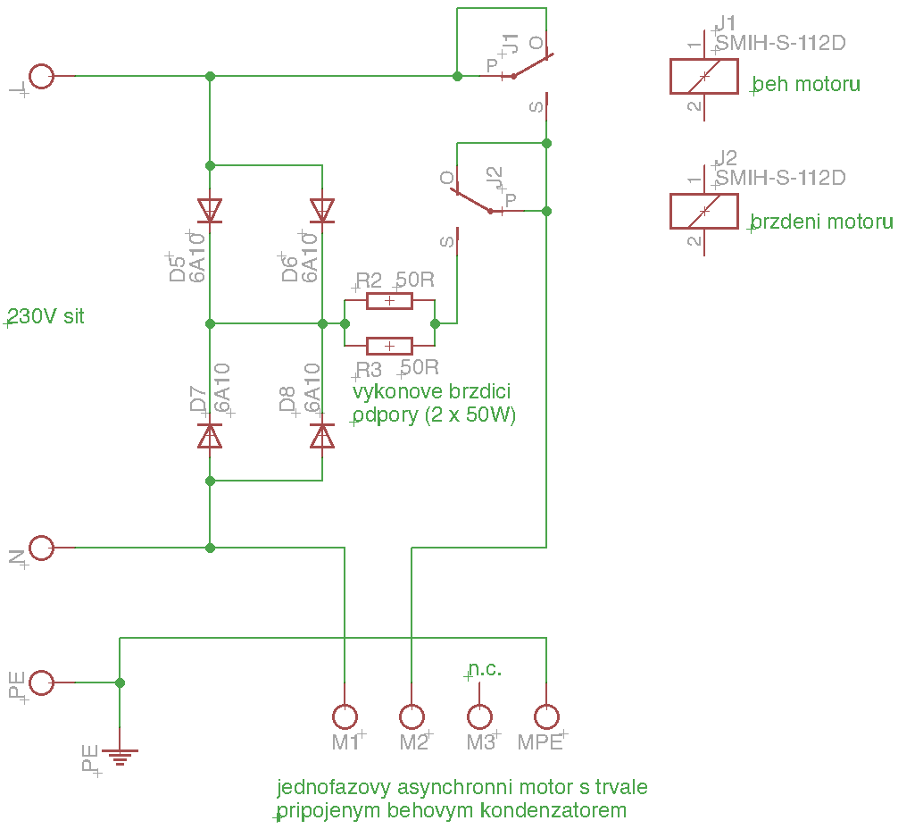 No a pokud je L zápornější než N, tak případné záporné napětí na vývodu M2 motoru vůči N (jako generátoru) způsobí proud přes brzdné odpory, když je na M2 kladné napětí vůči N, tak neteče nic.