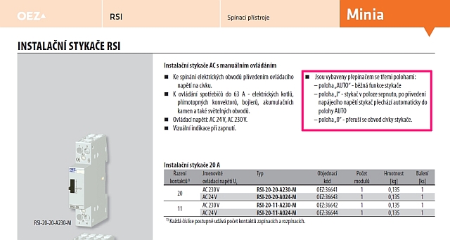 Nebo řada Z-TN230 - umožňuje volbu trvale zapnuto - automaticky - trvale vypnuto (odpojená cívka). Vyrábí se i typy s automatickým návratem, například Hager ETC225S (ruční režim trvá pouze do přivedení ovládacího napětí). Tyto funkce se uplatní spíš při nedostatečné kapacitě bojleru a době NT 8 hodin (sazba D25d). Při NT 20 hodin u přímotopných sazeb jsou většinou zbytečné.