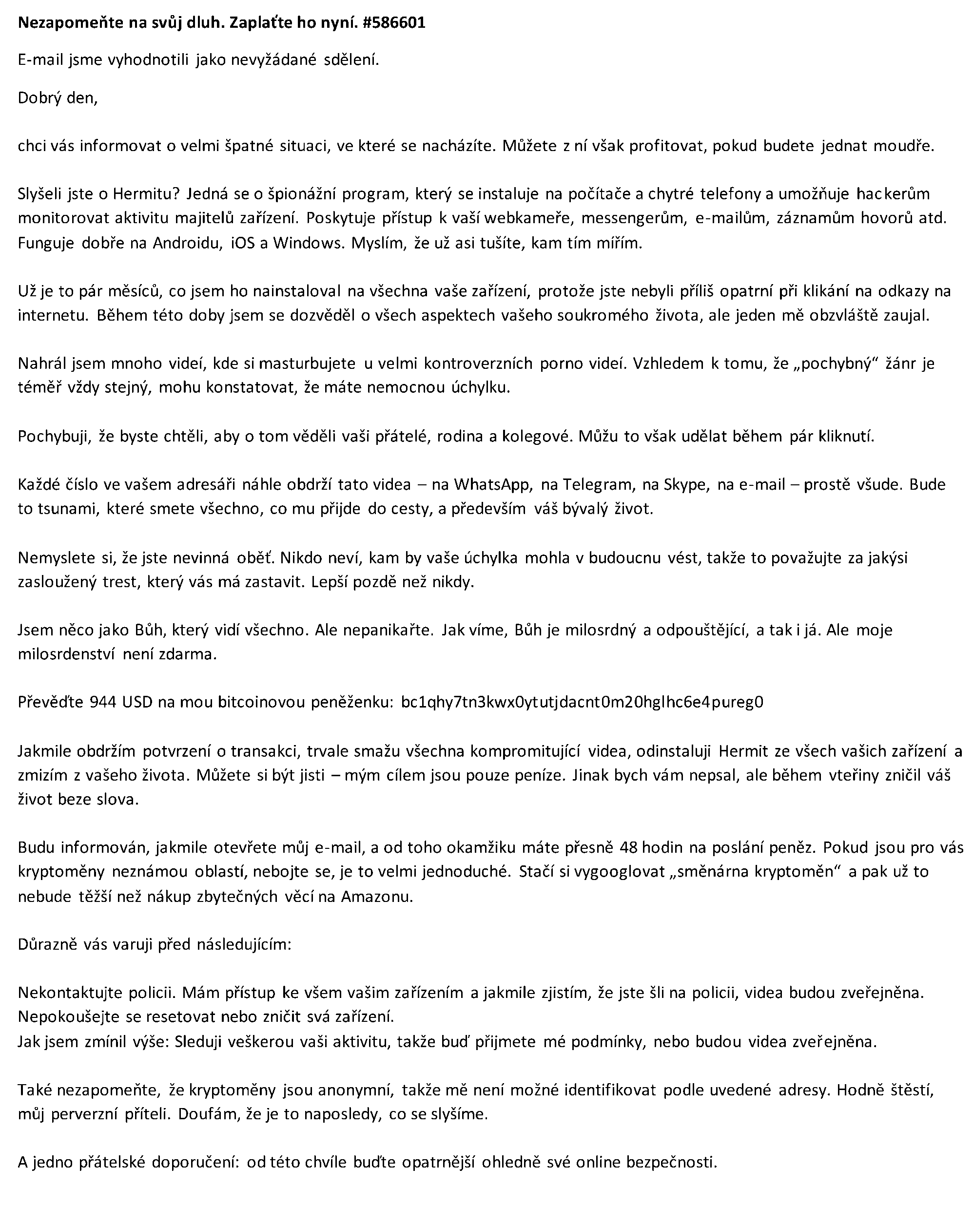 Na tenhle email (že mě natočili při sledování porna, a že zveřejní co jsem při tom dělal) jsem jednou odeslal v odpovědi výzvu k zaplacení honoráře, plus nabídku dalšího natáčení, protože takovej matroš jen tak někdo nepředvede. Dodnes jsem nedostal ani halíř!