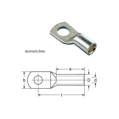 průměr oka 6,5mm, vnitřní průměr dutinky 3,8mm, délka dutinky 21mm, kabel 6mm2