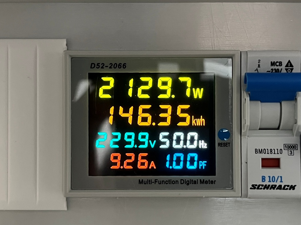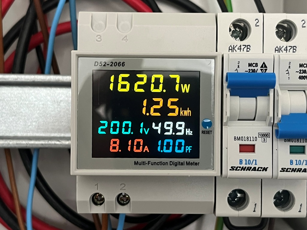 Dnes elektroměr D52-2066 první den v provozu (6 ks Hi-MO LR4-72HPH 455Wp, JA-SOL-2,5KW, TPK 210 – 12/2,2 kW v OKC 300 NTR/BP). Zdá se, že by mohl měření zvládat, střídač při západu slunce při cca 70 V odpojil výstup. Foto je z rána, uvidím po několika dnech