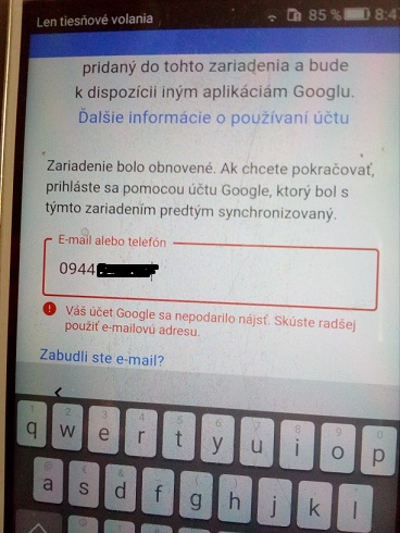 Neviem co mam zadat aky mail do tohoto stlpca na obr. Aky ucet je s tymto zariadenim synchronizovany? Pomocov akeho uctu sa mam prihlasit? V google mam len jeden ucet s ktorym som sa prihlasil.Ten s ktorym som sa prihlasil neberie,treba vytvorit vymysliet neaky novy ucet. Tento telefon je bez sim karty len na fotenie .dik