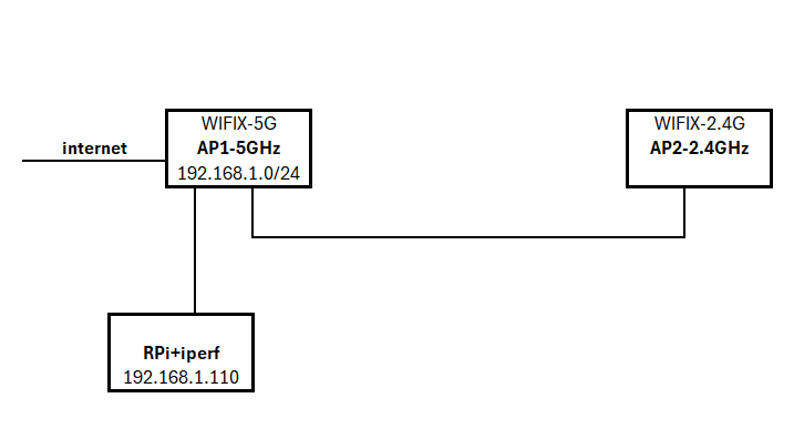 Když vezmu krabičku s RPi a na ní rozjedu iperf3, tak si zjistím, jakou mám propustnost kdekoliv. RPi byl připojený na AP1, ale může být i na AP2, když bych měl podezření na propojení obou AP. Takhle přesně bych určil, který segment sítě je špatný.