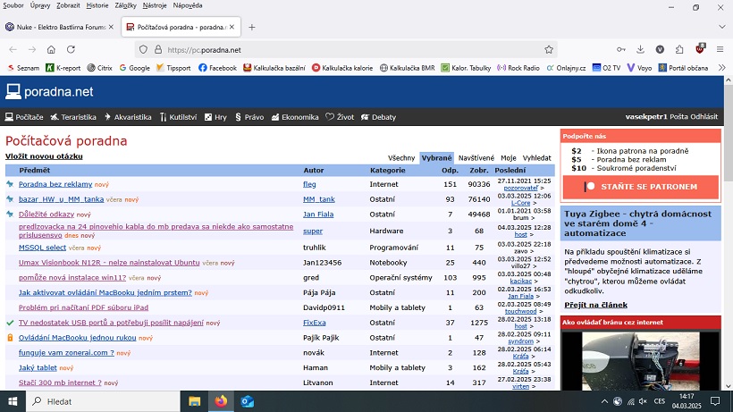 mám mozillu, funguje pouze https://poradna.net/ ale má jiný formát než jaký byl cca před týdnem.