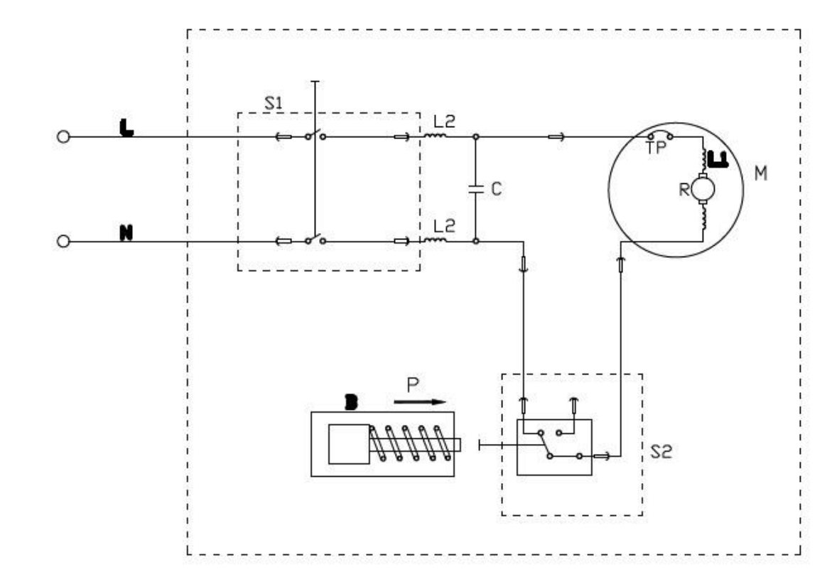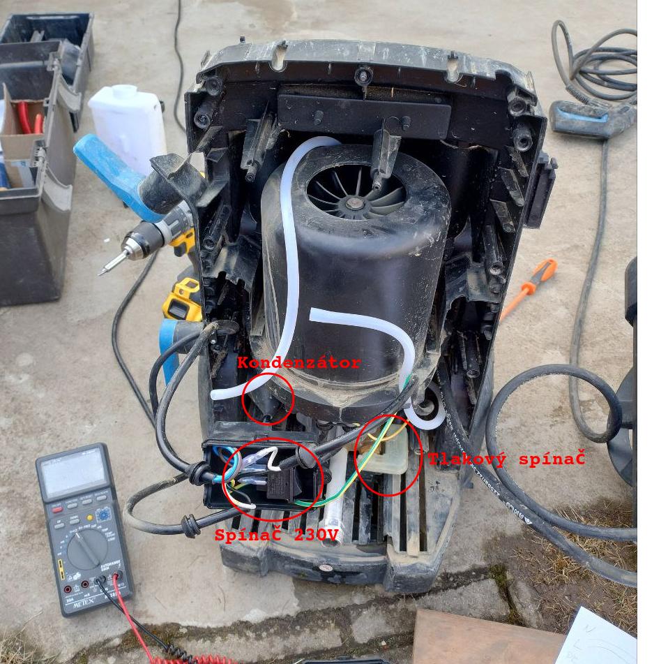Nechcelo sa mi do toho pustat, ale nakoniec som to rozobral. Ako pises, je tam len motor, tlakovy spinac a vypinac 230V.