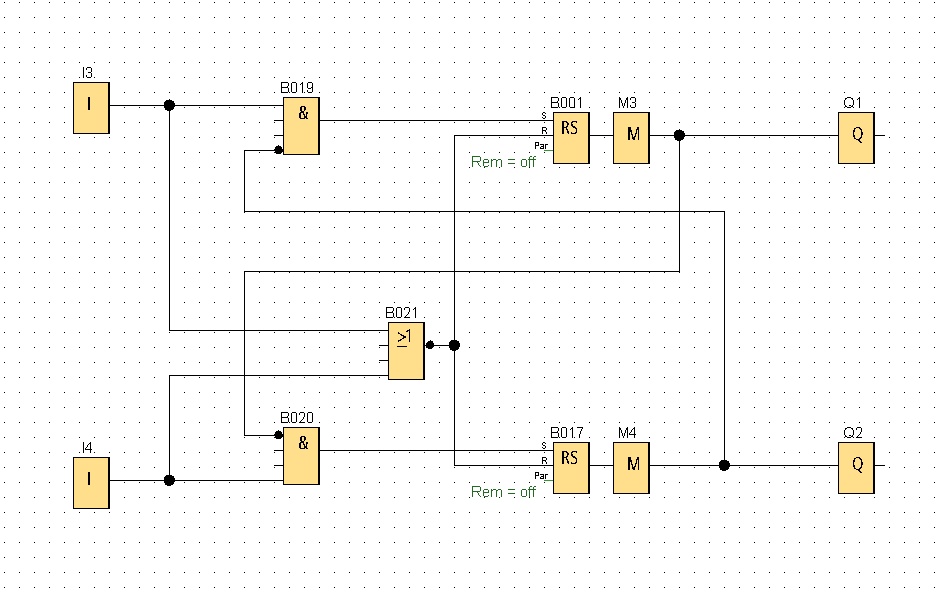 LOGO!Soft Comfort nedovoluje přímo dát zpětnou vazbu - tedy signál z výstupu zpět na vstup a je nutno do spoje vložit tento prvek.
