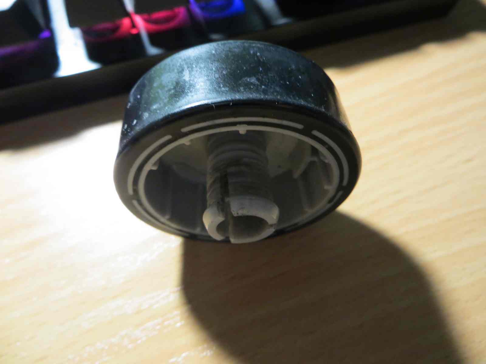 Vážení pánové, ale na začátku je celkem jasně napsané, že je to jedno pojezdové kolečko z vysavače. Takže jsou asi celkem zbytečné rady jak zaaretovat ovládací knoflík na hřídelku potenciometru, když toto se musí na nějaké ocelové hřídelce točit, a ten "límeček" je tam právě jen proto, že za něj drží to kolečko nějaký nálitek ve vysavači aby neupadlo (nevypadlo).