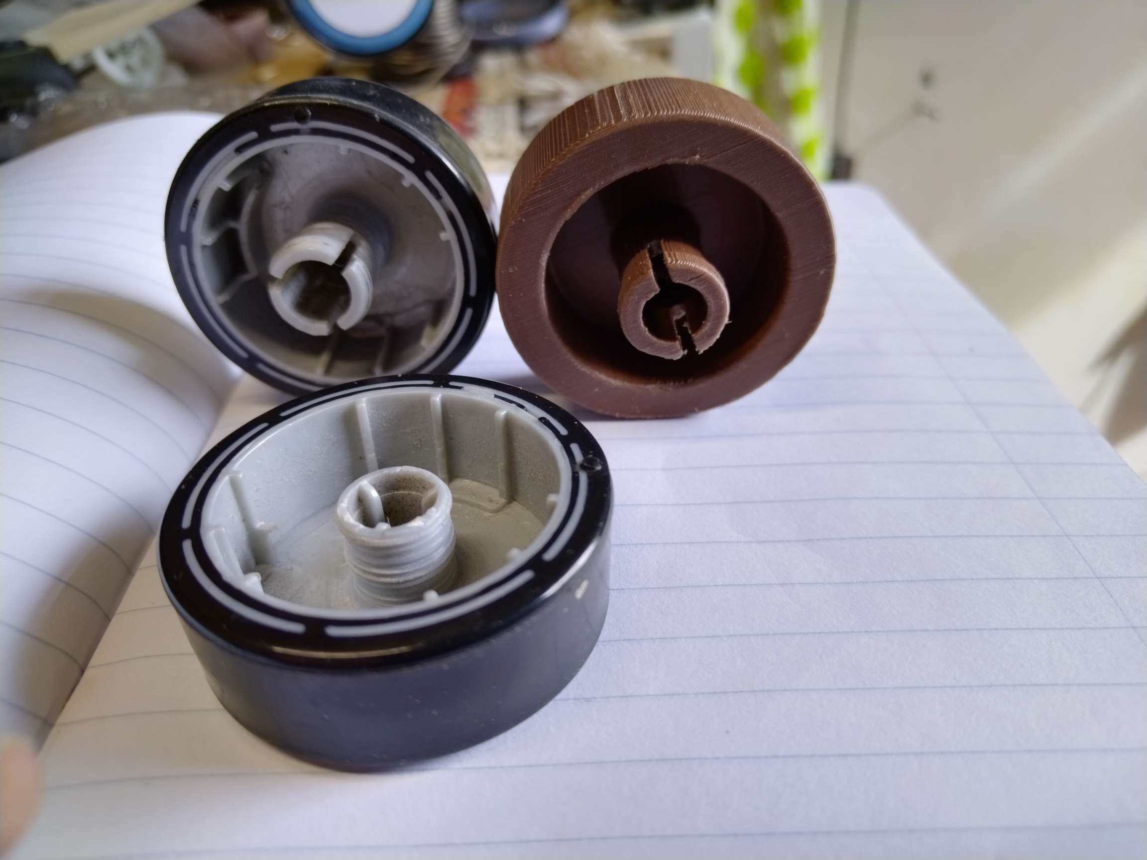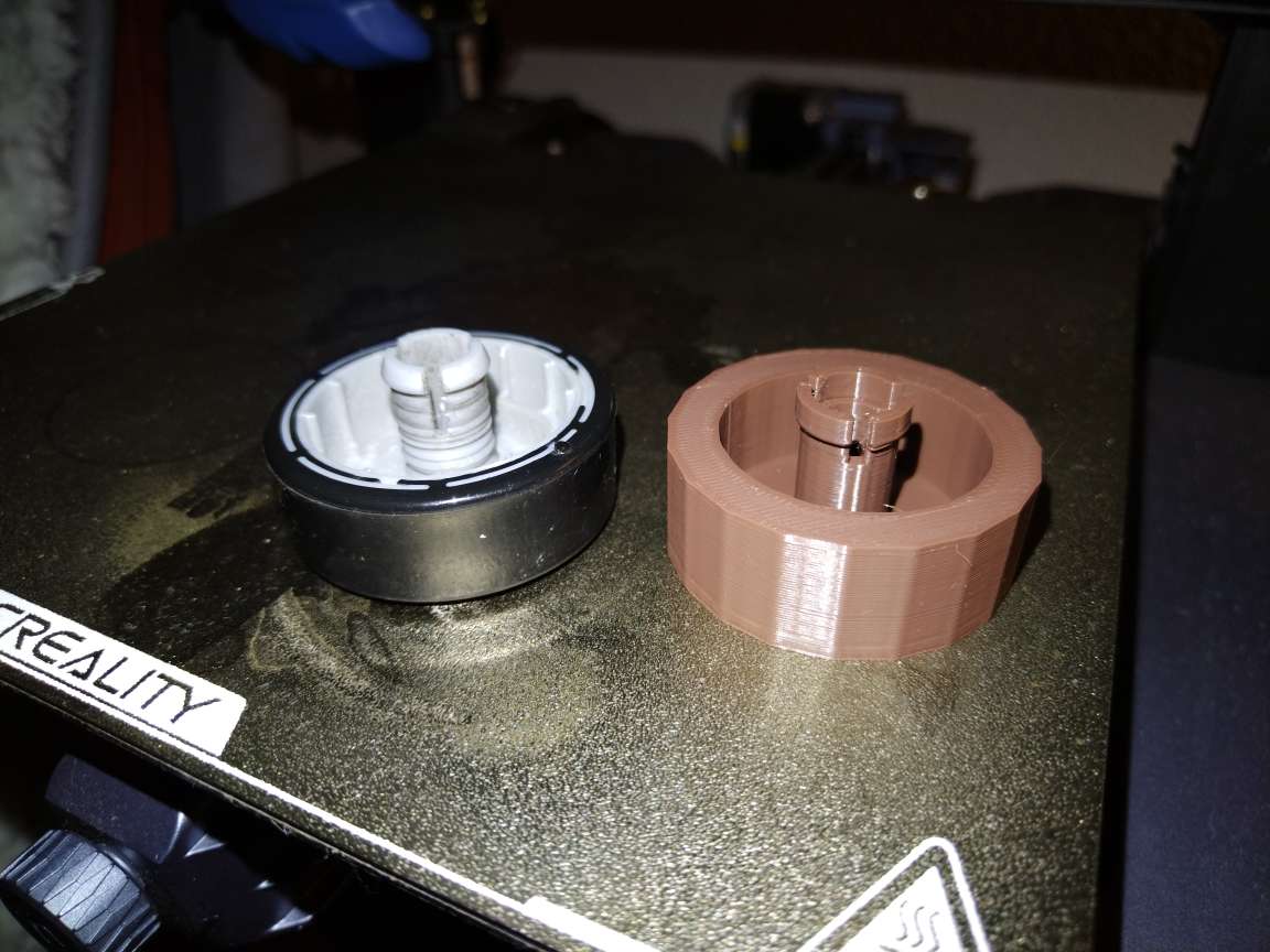 Kdybych poznal, že se jedná o pojezdové kolečko tak bych asi nenavrhoval červík. Vypadalo to jako knoflík regulátoru tahu. Tyto čudlíky všude fungují jako kurvítka. Asociace vznikla z toho, že jsem nedávno tisknul knoflík na přepínač fenu. V původním tvaru také evidentně kurvítko.