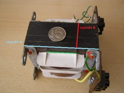 Obvykle se EI jádra skládají z neorientovanejch výseků plechu tak, aby po vysekání nezbyl žádnej odpad. Takže se šířka sloupku dělá jako 1/3 rozměru "A" = nejdelší hrany jádra, šířka mezery pro vinutí je 1/6 "A" a stejně velká je i šířka krajního sloupku. Plech tvaru "I" je vlastně "odstřižek", vzniklej vyseknutím dvou "éček", bez mezery přiloženejch "zubama" k sobě, takže je dlouhej 1 "A" a širokej 1/6 "A". Plocha okýnka pro vinutí pak vychází 1/2 "A" krát 1/6 "A". A ani superškudlivej PRCák-hyperoyebávák nemá důvod, proč by ty výseky dělal jinak, protože ve všech jinejch případech bude mít ztráty = nebude mít ty plechy nejlevnější. Takže není potřeba se ke zjištění šířky sloupku k němu dorejpávat šuplerou přes plast cívkovýho tělíska, když stačí vzít 1/3 největšího rozměru jádra ...