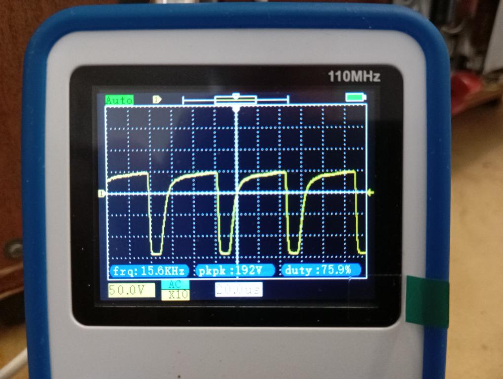 V řádkovým oscilátoru jsem nenašel žádnou chybu, tvar budícího pulzu je předpisový. Výměna vn trafa a vychylovacích cívek nepomohla, stejně jako elektronek. Prověřil jsem zatemňovací obvody a taky jsem nic nenašel a problém nezmizí ani při jejich odpojení.