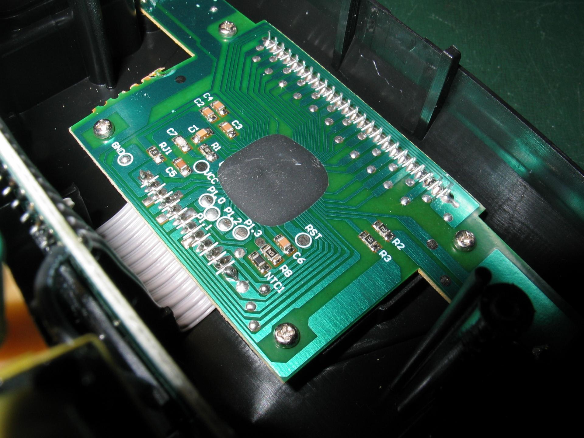Procesor je v ciernom flusanci na doske LCD. Zaujimave, ze su z neho na oznacene pady vyvedene signaly P1.0, P1.1, P1.2, P1.3, RST a VCC. Mozno sa pouzivaju vo vyrobe na programovanie flash.