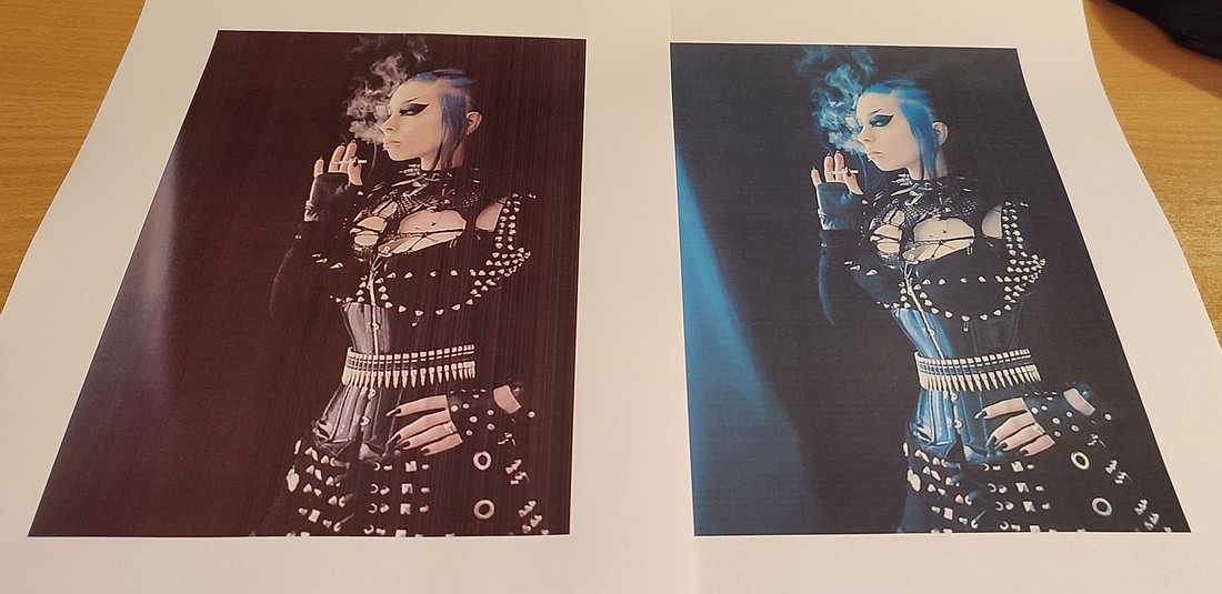 Vľavo výstup zo starej LED OKI C301dn, kde sa už tiahli vertikálne čiary po fólii i valcoch,takže už nesprávne mixovala CMYK a náhradný drum unit stál viac jak nová tlačiareň. Inak tlačila grafiku krajšie.