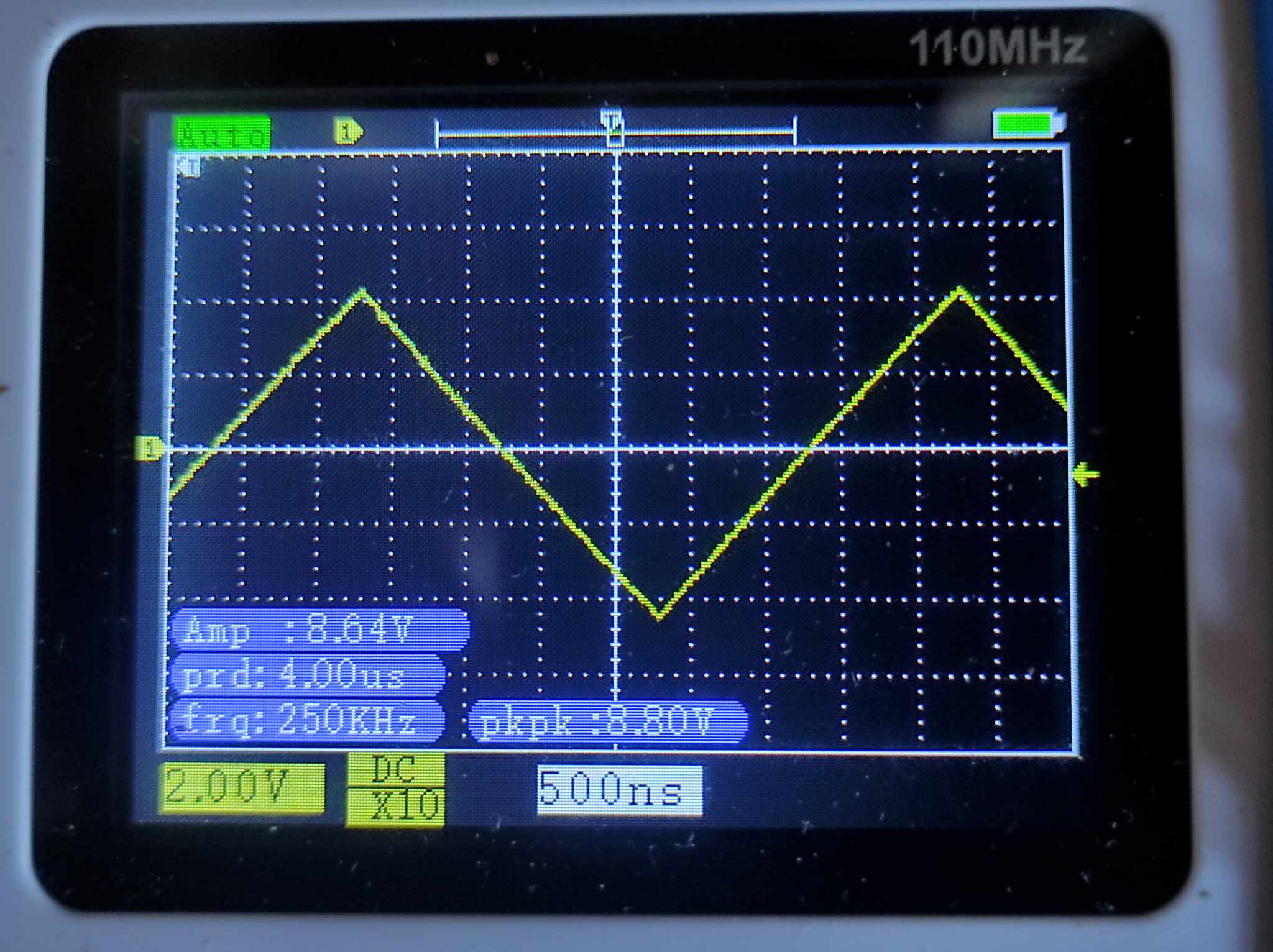 Ten odpor je vcelku jedno jaký tam dáš - jen nesmí překročit proudové možnosti obou obvodů, které jsou okolo. Myslím, že obě hodnoty by měli být ok. Nejspíš u většího odporu to bude trošku mravnější, ale čím větší odpor, tím větší deformace obdélníku, který jde do vstupu, tedy větší chyba ve tvaru trojúhelníku. Pak taky záleží na OZ, jak si poradí s tím vrcholem trojúhelníku. Obecně se dá říct, že čím rychlejší OZ, tím by to mělo být lepší. Ale některé obvody můžou vykazovat v tom bodě podivné chování už jen kvůli tomu, jak jsou navrhnuté...