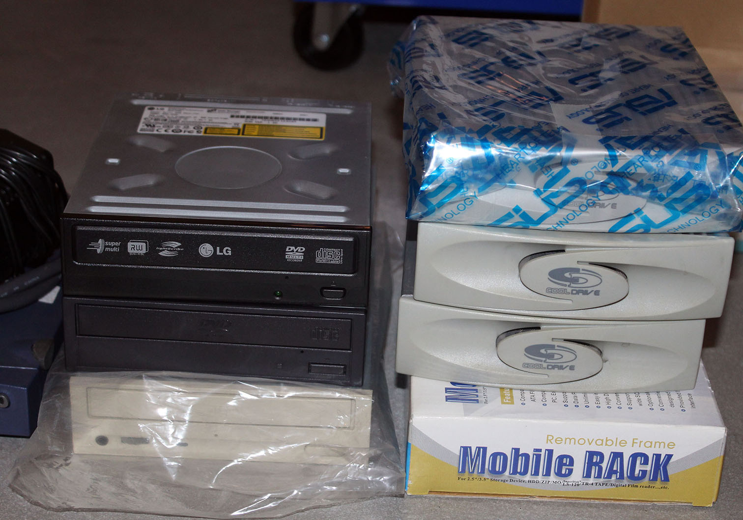 Tak packeta je iba do 15 kg. Takže poprosím vyradiť tie dve čierne DVD mechaniky (čiernych mám dosť), a tých 5 kusov SCSI diskov čo sú na sebe, to sú nejaké novšie serverové, to nemám do čoho zapojiť (inak sú v tom perfektné magnety, oplatí sa namiesto vyhodenia rozobrať).