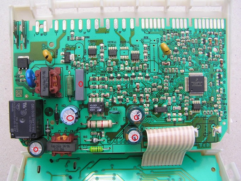 Po vyndání elektronické desky jsem zjistil ,že jsou vyhřáté kontakty u spínacího relé.Foto č.1 Tyto kontakty jsem znovu proletoval ,ale po montáži se myčka chovala stějně .
