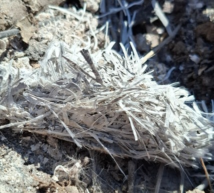 Na azbest mi to pripadá "moc veľké vlákno" - ten má oveľa "jemnejšiu - kratšiu" štruktúru, ako sklené vlákno - samozrejme v porovnaní s okolitými zhorenými časticami v ohnisku... Ale opatrnosť je určite na mieste !