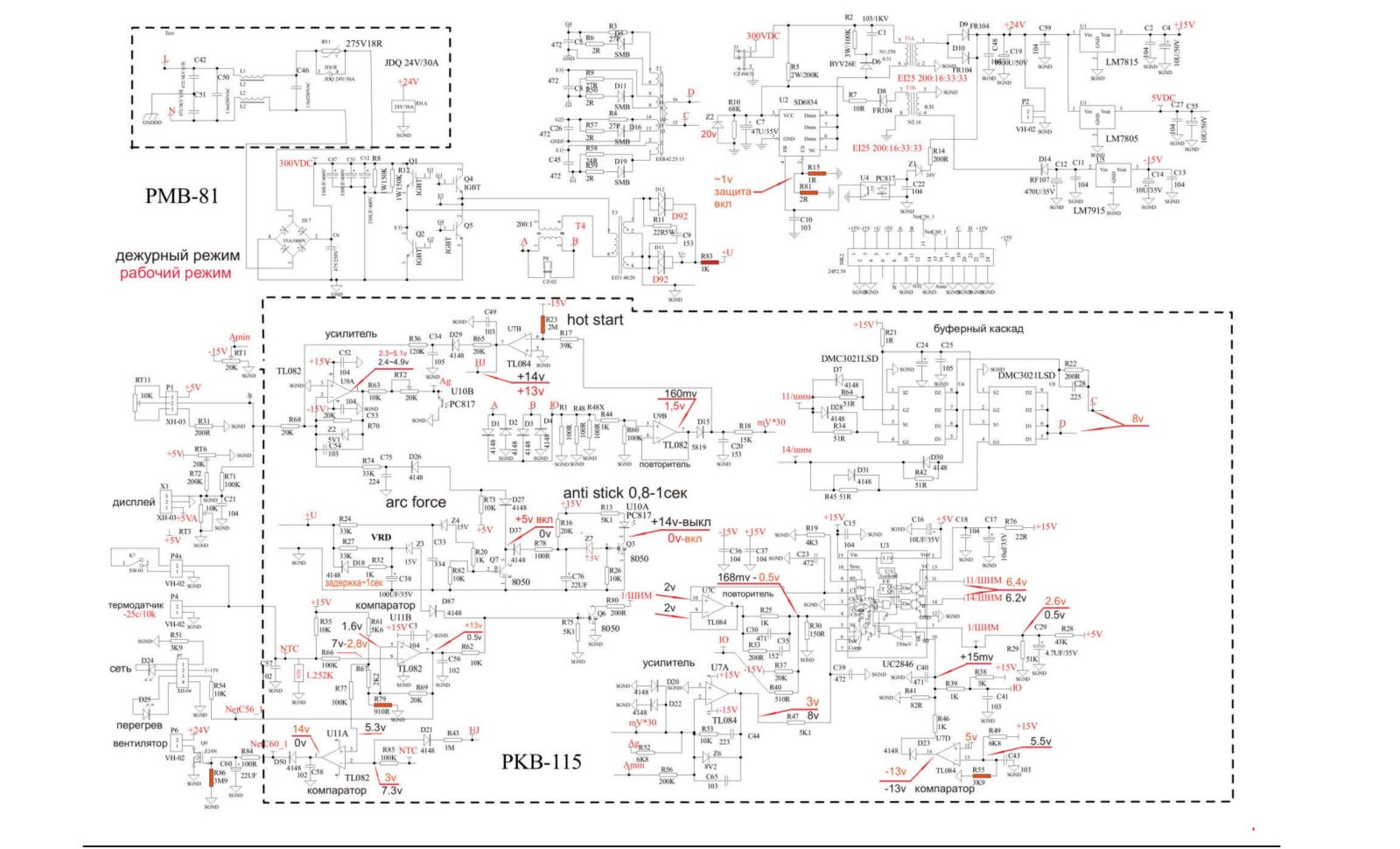 Dobry den ako vyradit funkciu vrd v invertore dnipro sab 258dpb žeby sa konečne obluk zapaloval tak ako sa ma .Lebo invertor ma na vystupe 20v a ja by som chcel 65v.Prikladam schemu: na internete som našiel len toto: Pre toto zariadenie som odstránil Zenerovu diódu Z3 a zvýšil R11 na 10W. XX 65V, regulácia prúdu funguje. Čas ukáže. ešte som našiel toto: зробити через вимикач стабілітрон Z3, або діод Д87, або резистор R80, я на свому 258 ДПК резистор R80 зробив через виникач і впаяв конденсатор на 100 нанофарад і все працює без нарікань. a ešte som našiel toto pekne video: https://www.youtube.com/watch?v=xa9YltGSCgY&list=WL&index=7