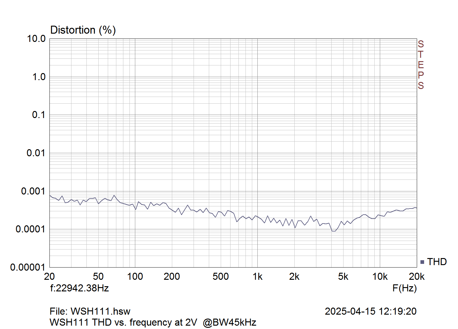 THD v závislosti na kmitočtu v programu STEPS/Arta.