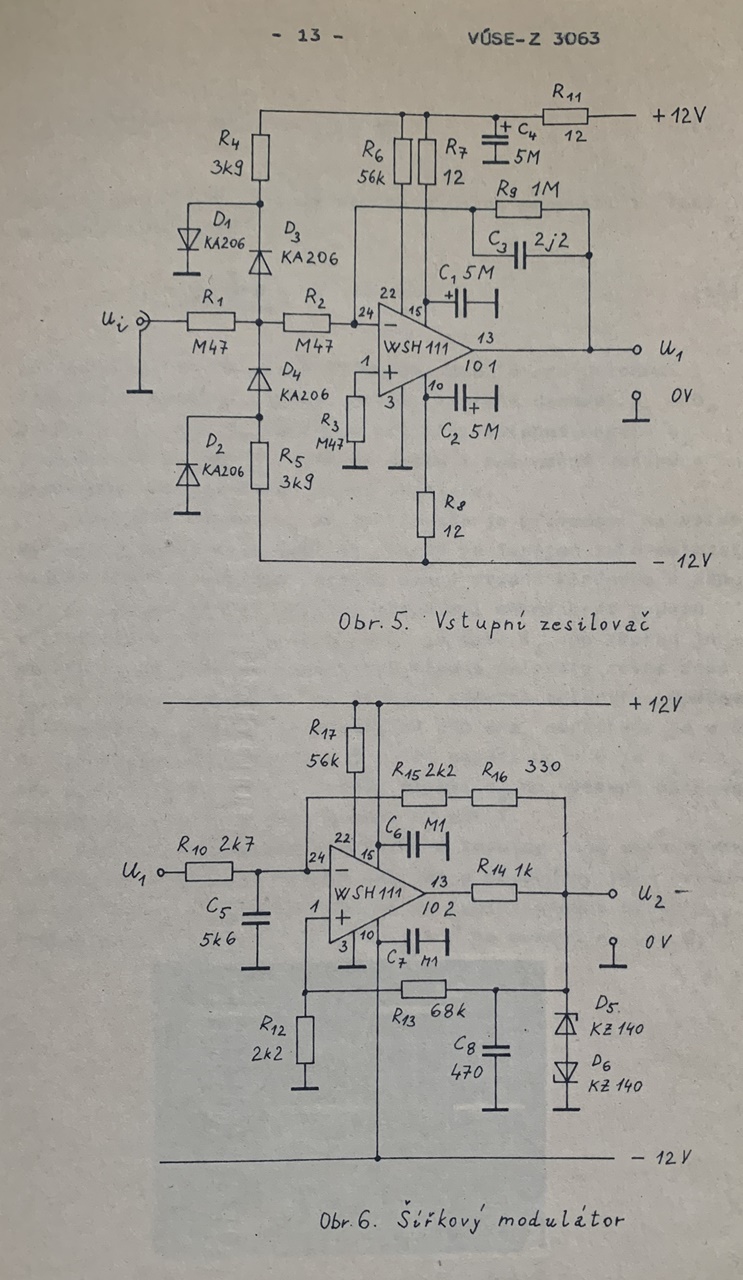 Postřehy kolegy by byly určitě zajímavé. Přesně, používaly se jako měřicí zesilovače. Já jsem s jejich použitím vyvinul v roce 1982 systém pro přenos signálu po optickém vlákně s PWM modulací, pro zkratovnu VÚSE. Nosná PWM 170kHz, přenášené pásmo DC-17kHz, Bessel 5. řád filtrace. Obvody byly použité ve vstupním zesilovači (ochrana vstupu do +/-250V) a v PWM modulátoru. Dole obrázek z výzkumné zprávy z roku 1984. Mimochodem, dělali jsme pro Lanškroun ověření ekvivalentu LH0033.