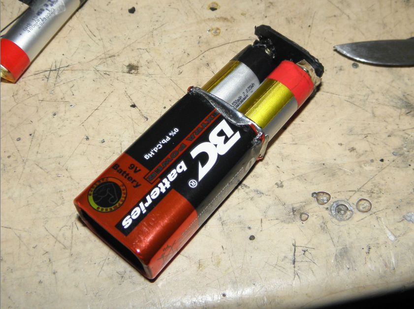 Ze zvědavosti jsem kuchnul zmíněnou podivnost a zjistil, že tam je Li Ion článek většinou 550 mAh. Kuchnul jsem tedy další, nabil a používám dva v sérii do měřáků místo 9V baterky. Nabíjím bez balanceru proudem cca 50mA s omezením do 8,2V a zdá se, že to funguje (už přes rok). Mám jich už slušnou sbírku, jeden článek jsem použil místo dvou knoflíkových baterek do osobní váhy, používáte to taky někde?