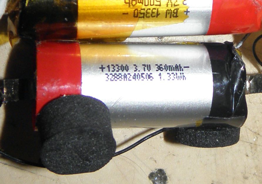 Řešní pro měřáky na fotkách. Zatím jsem našel 3 druhy baterek, nejdelší má 400mAh (?), prostřední 550mAh, nejmenší 360mAh. Použil jsem 2ks prostřední velikost. Jako obvykle nemůžu nic najít, v tomto případě kleštičky na otevření, tak to není moc hezké, nicméně to funguje.