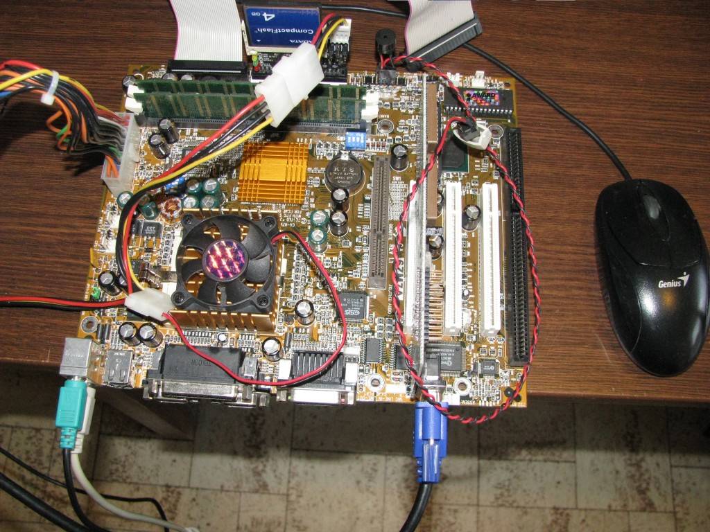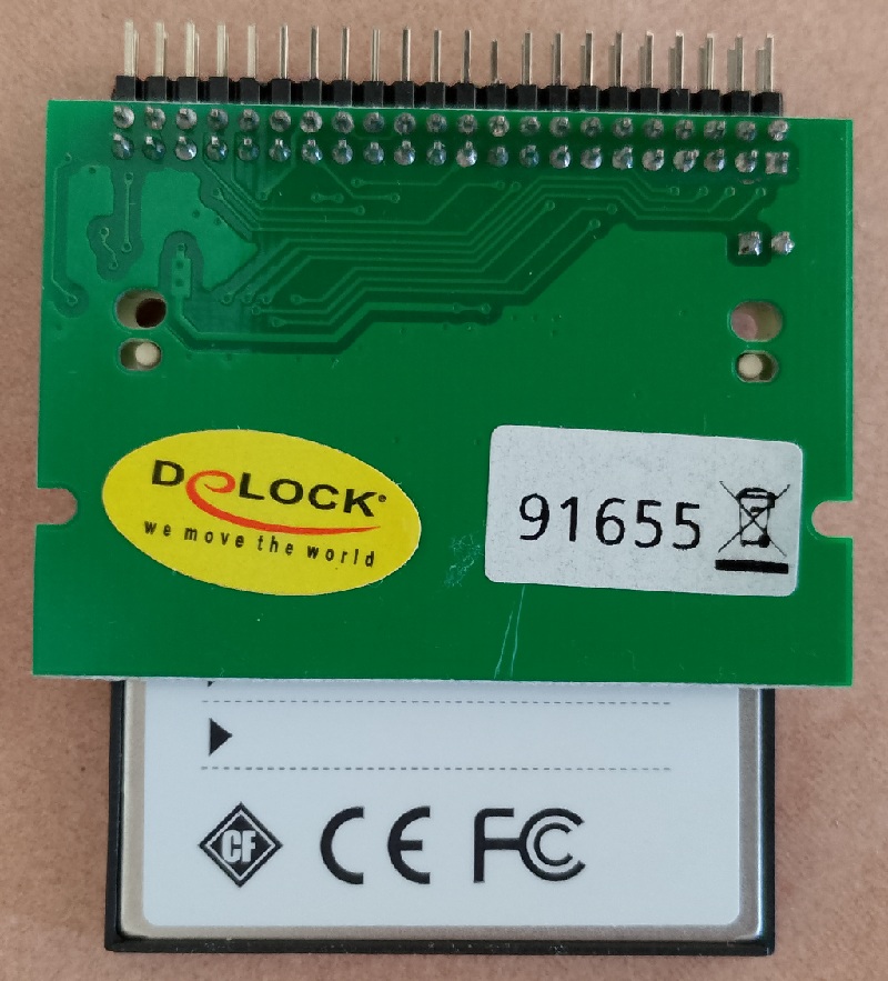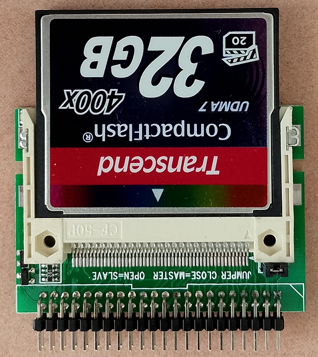 Svou jedinou letitou experimentální kartu (ADATA 4GB "ACF4GZ-R"), určenou pro blbnutí s osmibity, jsem testoval v desce GA-6ZM7A. Samozřejmě v adaptéru CF <-> ATA (ADIDE2CF), k tomu opt. mech. PATA ve druhém kanále, dále interní floppy (pro načtení pgm. Norton disk editor), paměť 2x 128MiB SDRAM a Petrželon® 366MHz.