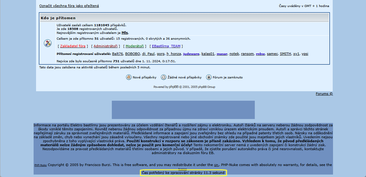 No bylo by to krásné, kdyby to opatření mělo nějaký výrazný výsledek. Níže uvedený screen říká, že se stránka načetla za 11s (FF) při 51 přítomných uživatelích.