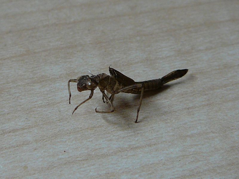 Včera jsem okukovala jezírko, jací obyvatelé tam jsou. Kromě obvyklého roje bruslařek jsou tam potápníci, jedna znakoplavka a pod travnatým břehem se schovává ropuška zelená. Občas je slyšet kuňkat. A včera jsem na trávě na březích objevila spoustu svleček nějakých hmyzáků. Mají asi 20 mm na délku, vypadají jako svlečky od šídla, ale mají navíc "pádlo" na prdelce. Že by se vylíhly jepice?